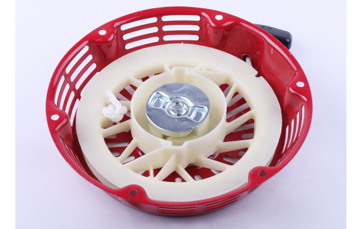 Ручной стартер для японских бензиновых двигателей Honda GX390 (кик стартер) предназначен для запуска бензиновых двигателей Honda моделей Honda GX390 с помощью ручного запуска.