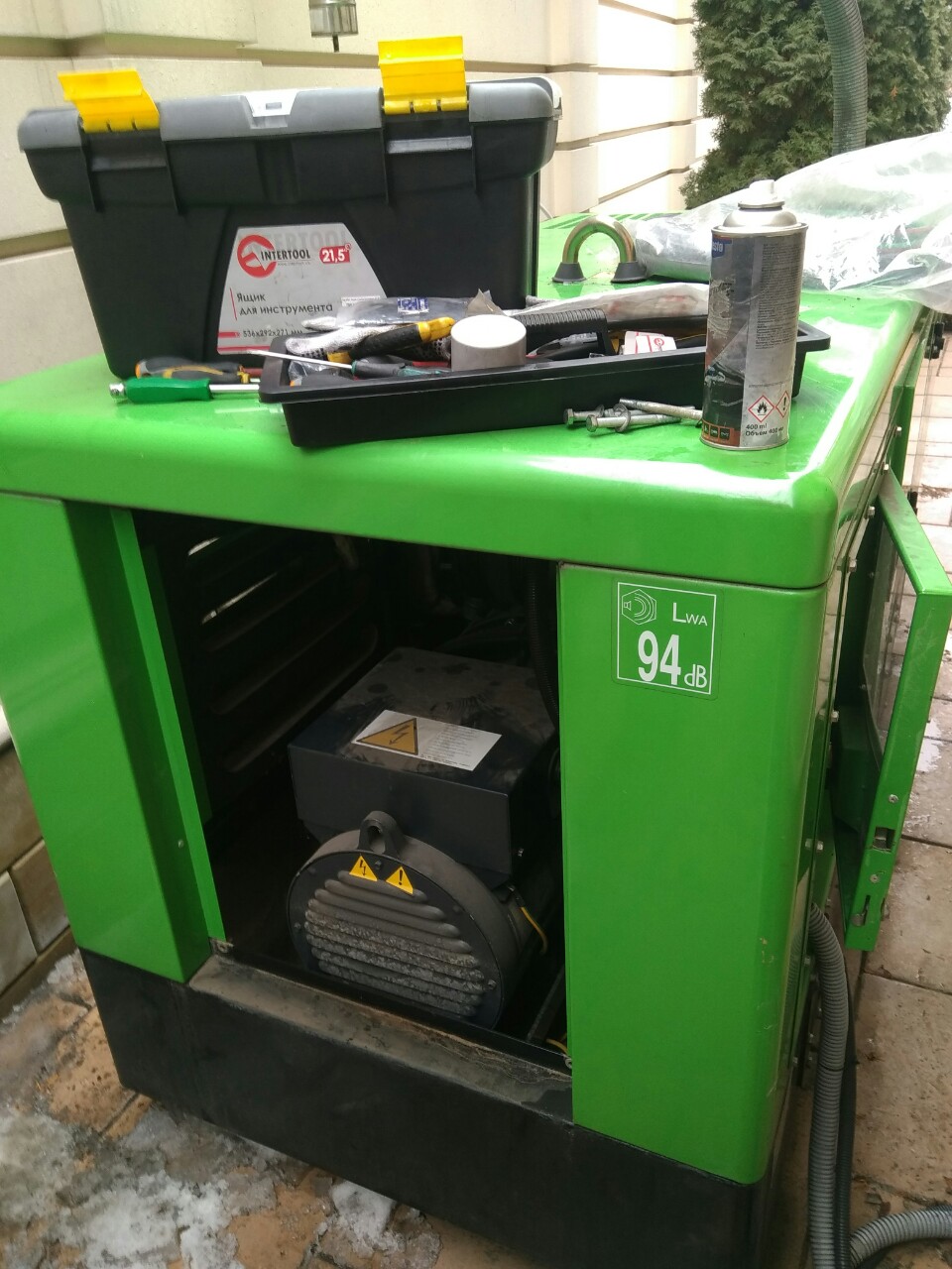12.02.2019 дизель генератор Inmesol водяного охлаждения с системой автоматического запуска Deep Sea после самостоятельной замены масла переслал заводится. Дизель генератор Inmesol мощностью 40 кВА пос. Романково Киевской области во всепогодном шумопоглащающем кожухе после диагностики и ремонта был отремонтирован на объекте (дома) Заказчика.