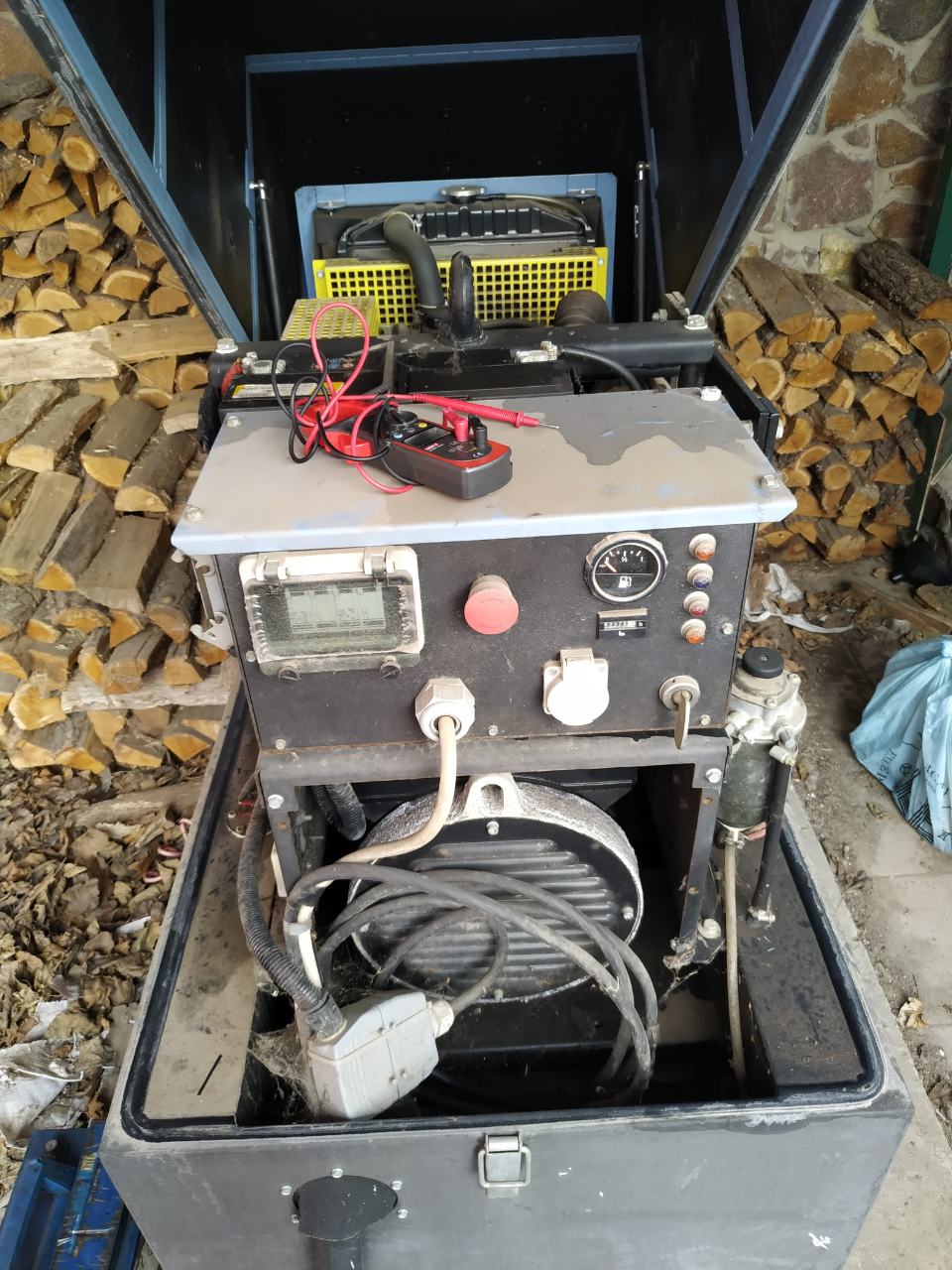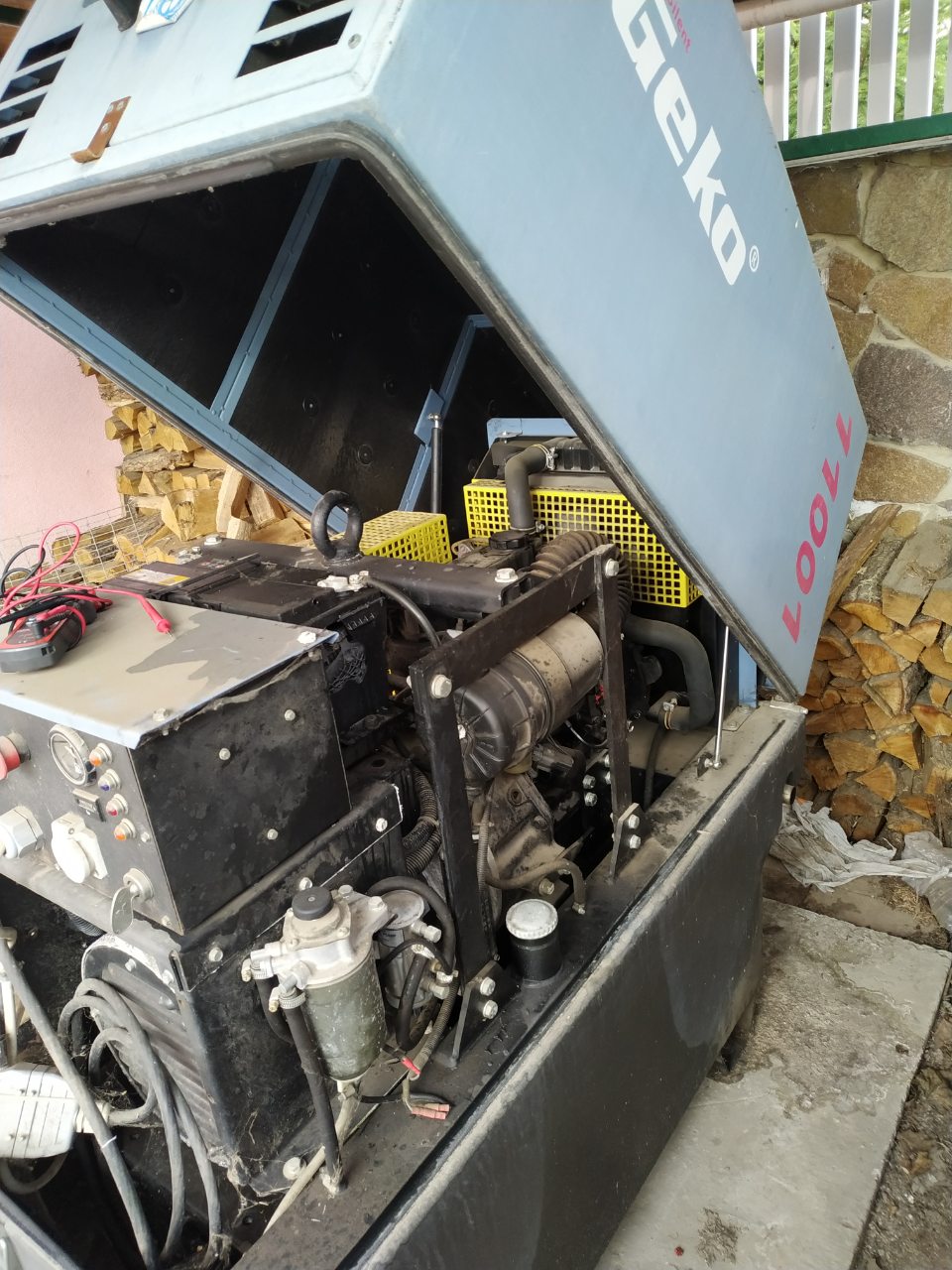 29.03.2019 ремонт дизельного генератора Geko 11001 мощностью 10кВА с двигателем Mitsubishi S3L2 водяного охлаждения и системой автоматического запуска TE805 на объекте Заказчика пос. Крюковщина Киевской области. Приехав на объект и подняв крышку кожуха инженера сервисной службы увидели что аккумулятор дизель генератора Geko 11001 взорвался. Выполнив диагностику и проведя техническое обслуживание дизель генератора Geko и проверив выходные параметры под нагрузкой и убедившись в исправности ДГУ в автоматическом режиме передан клиенту.