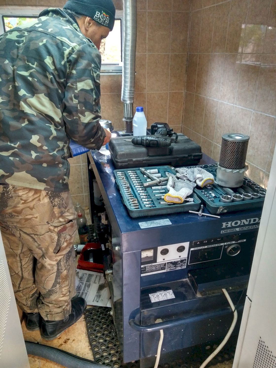 18.09.2018 специалистами сервисного центра выполнено техническое обслуживание дизель генератора Honda EXT15D на базе 3-х цилиндрового дизельного двигателя с водяным охлаждением в поселке Мархалевка. Инженерами сервисного центра были произведены работы по замене масла и масляного фильтра, заменен топливный фильтр, а также очищен фильтр воздушный. Проведены работы по регулировке выходных параметров дизель генератора Honda EXT15D.